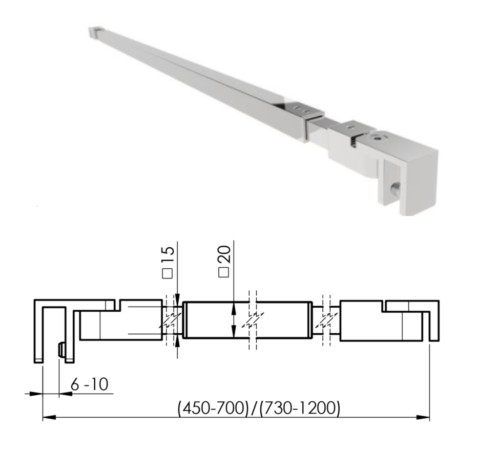 • SHOWER GLASS SUPPORT BAR Stainless steel wall to glass shower support bar F005 bracing bar